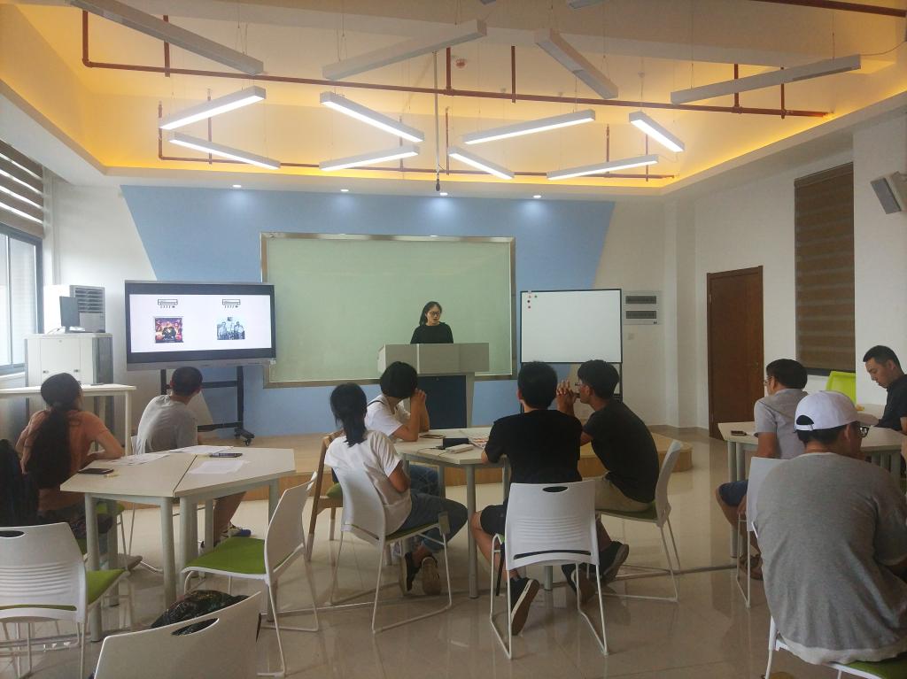 讲台上,同学们个个意气风发。员工团队分别从“恋爱、社会公德、井冈山精神、青年价值观”四个方面进行授课。来自16级行政管理专业蔡丽琼同学率先登场,将爱情的含义、恋爱中的道德规范和树立正确的爱情观三个方面介绍得非常详细和完备,通过现实的问题启发同学如何在生活中进行正确对待爱情。其中,17级财务管理的四位同学通过情景剧情再现,运用生动活泼的案例,与在场观众形成积极互动,使得在场的同学们了解“什么是社会公德”,现场紧张的氛围也逐渐缓解。