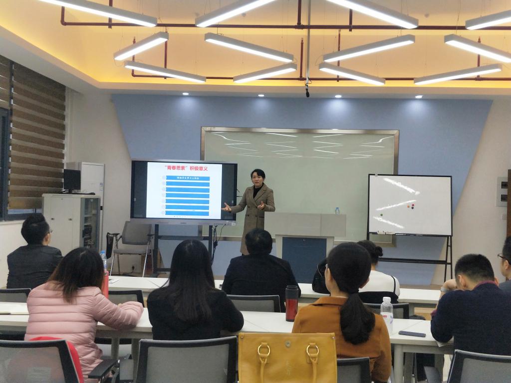 董老师根据福州大学“青春思索” 思想政治理论课程学习成果大赛的经验,分别从舞台化的表现、多级竞赛、课题研究等方面进行一一介绍。她表示通过舞台化的课题研究竞赛,可以增强员工学习主体性,深化对理论的理解,同时增强员工表达、思考、分析问题的能力,有利于增强团队合作精神和集体意识的培育,促进教学相长。