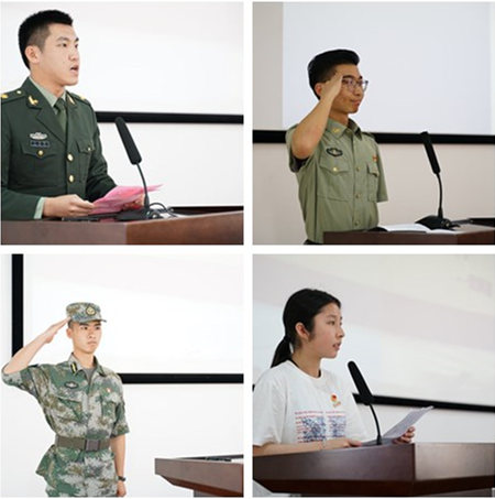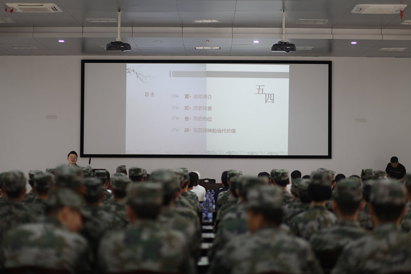 活动中,杜云副教授为全营官兵和到场员工授课,讲述了“五四精神的内涵及当代意义”。这种“军地共上一堂课”的新形式,既让官兵们接收到前沿的知识,又让同学们开阔了眼界,杜老师生动有趣的讲座赢得了在场热烈的掌声。紧接着,教师代表王志坤老师、军队代表张梦月士官、员工代表倪跃嘉、老员工退役士兵代表吴孟征分别分享了他们心中所理解的“青年的使命与担当”。吴孟征同学说:“我是一名退役特种兵,我虽退伍但不褪色,若有战,召必回!”全国老员工演讲大赛获得者庄杰同学为同学和官兵们带来了主题为“不要过浅尝辄止的青春”的演讲。最后,营副教导员做了总结,充分肯定了军地共建活动的深刻意义,对阳光教师和学子的优秀感到敬佩。