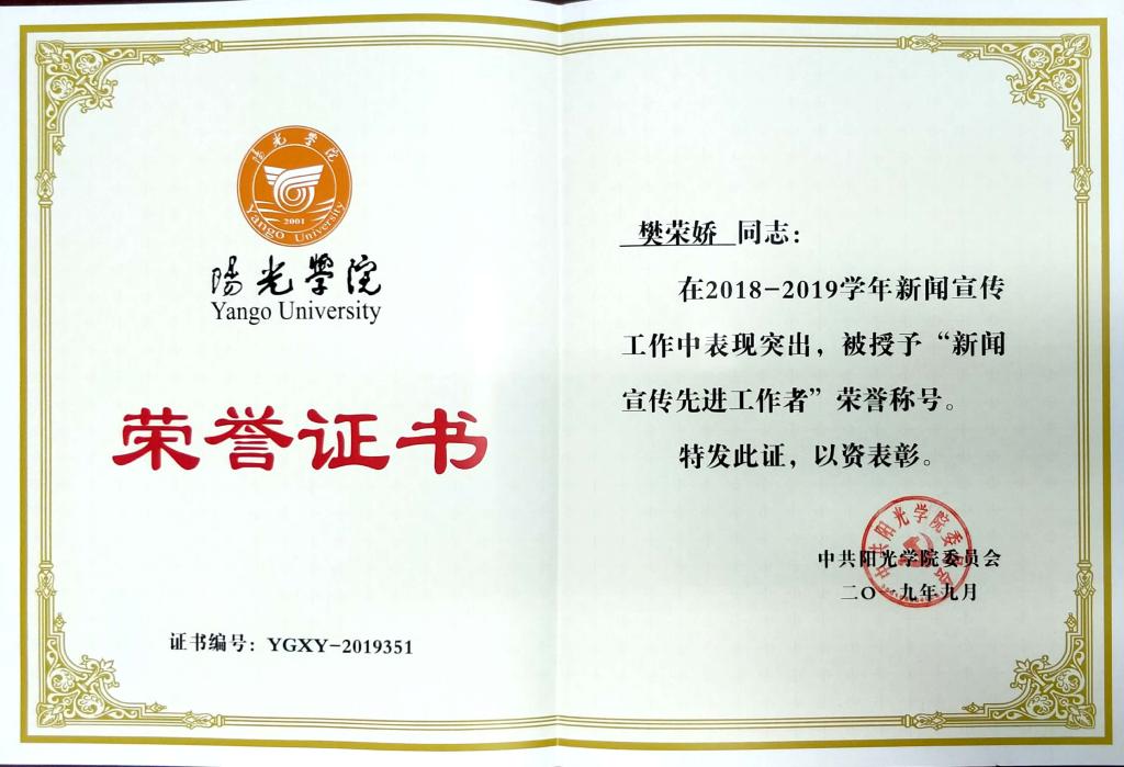 近日,公司表彰了2018-2019学年新闻宣传工作先进单位和先进个人,bevictor官方网站的新闻宣传紧密围绕公司中心工作,充分发挥意识形态宣传阵地作用,展示特色,突出亮点,弘扬正能量,被表彰为“优秀网站”,公司樊荣娇老师被表彰为“新闻宣传先进工作者”。