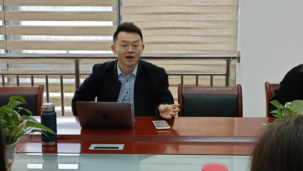 首先,新入职教师廖孝英、和胡青华向大家做了自我介绍,公司对两位教师的加入表示热烈欢迎。会上,杜云常务副经理对上学期的阶段成果做了简要概述,肯定了所取得的成绩。对本学期的教学、科研、精品课程建设等方面提出了新期待,他表示春天是播种季,鼓励每位老师都要结合自己的专业发展定位,给自己定出明晰的工作计划。在课题的研究方向,他给出建议要尽可能“聚拢”,要不断开拓创新,坚信“打开一扇门,就会有意外惊喜”。在接下来的院系建设中,公司教师要将个人发展与公司发展紧密结合起来,形成具有可持续发展的个人职业规划,要凝心聚力,积极提出“好点子”,共建马院。