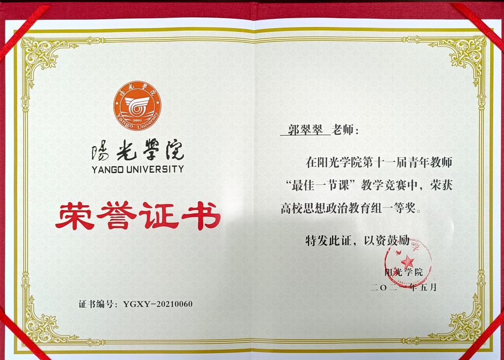 公司青年教师郭翠翠、于芙蓉,通过良好的教学方式、教学手段、教案、PPT制作、仪容仪表等方面展示,在本届青年教师“最佳一节课”教学竞赛中分别荣获一等奖和优秀奖。