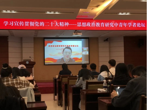 会议分为总论坛和两个分论坛,来自全国各高校的几十位专家学者相聚论坛,紧扣二十大精神主题,围绕思政教育领域热点难点问题等议题交流分享研究成果。我支部书记杜云以“儒家理想人格观的当代价值与启示”为题作主题报告。他指出儒家的理想人格就是君子人格,时代新人与儒家君子人格在核心内涵、精神境界、养成路径及价值追求等方面有许多相通之处,并详细阐述了儒家理想人格的价值功能,对培养时代新人具有重大意义。受到了与会专家学者的一致好评。