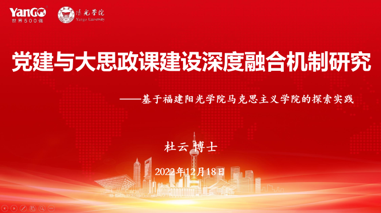 公司常务副经理杜云博士应邀参加本次研讨会,并以“党建与大思政课建设深度融合机制研究—基于福建伟德体育的探索实践”为题作交流分享。杜云博士从组织建设、教学改革、教师党员队伍建设、理论宣传及社会服务等方面,分享了伟德体育以党建引领探索大思政课建设改革创新的思考和举措,相关工作举措及成效受到了与会嘉宾的一致好评。