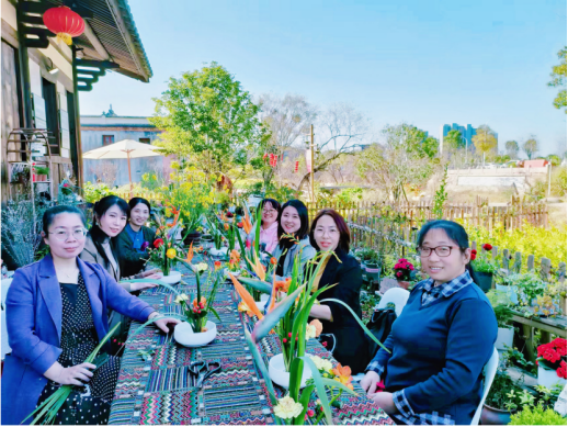 伟德体育组织全体女教职工,来到风景怡人的梁厝特色历史文化街区半日花房,进行传统中式花艺课程体验。传统中式花艺受到儒、道、佛教思想的影响,认为万物皆有灵性,因而常根据其习性,把无语的花草,赋予人的感情和生命力,借用草木抒发人的意志,心情。花叶触及之处,满是长长的遐想与回味。此次课程使老师们从中式插花中体悟到中国传统文化的魅力,在清雅花香中寻得内心的一份安然自足。在这一天我们马院女教职工放下工作寻找开心,放下家务得到舒心,放下孩子免得累心,放下压力有颗健康的心。一枝一盂,偷得半日闲雅。一花一木,唯求此生逍遥。使每个老师都能成为生活的艺术家,领略中国传统插花艺术的雅致与美妙。