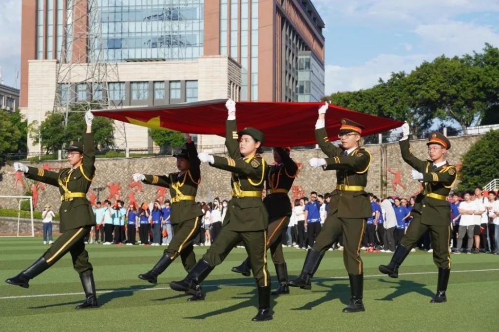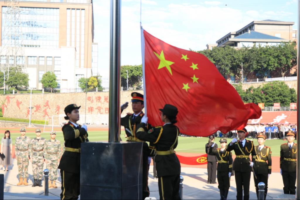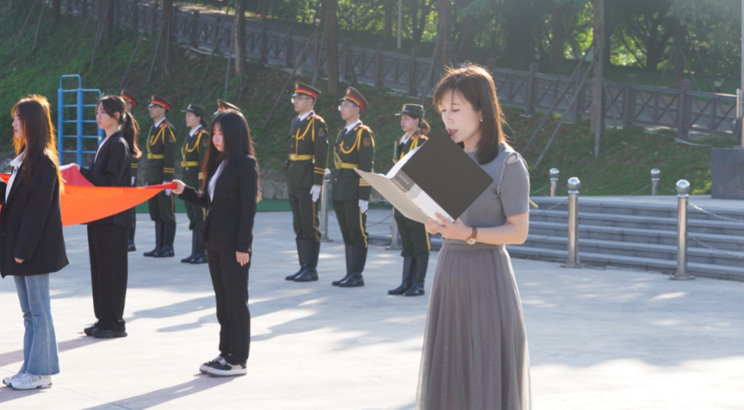 “今天,新时代青年正处于中华民族腾飞和变革的最好时期,机遇与挑战并存,成功与艰辛同在,在天降大任于斯人的使命和责任下,每一位青年都是国之栋梁,人民之希望。”郭翠翠副教授以《阳光学子学习贯彻习近平新时代中国特色社会主义思想主题教育》为主题,在升旗仪式中为阳光学子们上思政课,在末字声落时,在场师生无一不拍手叫好。