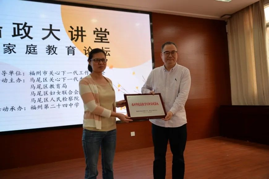 区妇女联合会邵良琦副主席为福州第二十四中学授牌“福州市家庭教育创新实践基地”,希望公司能以此为新的起点,加强链接家庭教育方面工作。