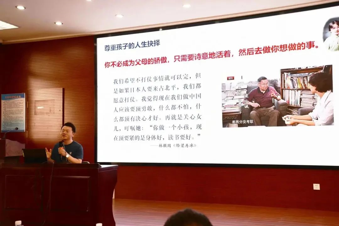 接下来,杜云从“我们为什么回答不上孩子的问题?”引出了童年的价值和意义,他提出,家长应“保卫童年,不让美好仅仅成为回忆”。“你不必成为父母的骄傲,只需要诗意的活着,然后去做你想要做的事”,杜云博士引用了林徽因、梁思成夫妇与儿子梁从诫的故事,以及林徽因写给女儿的书信,指出父母是孩子的“引路人”,家庭教育要积极探索和充分尊重孩子的人生抉择。