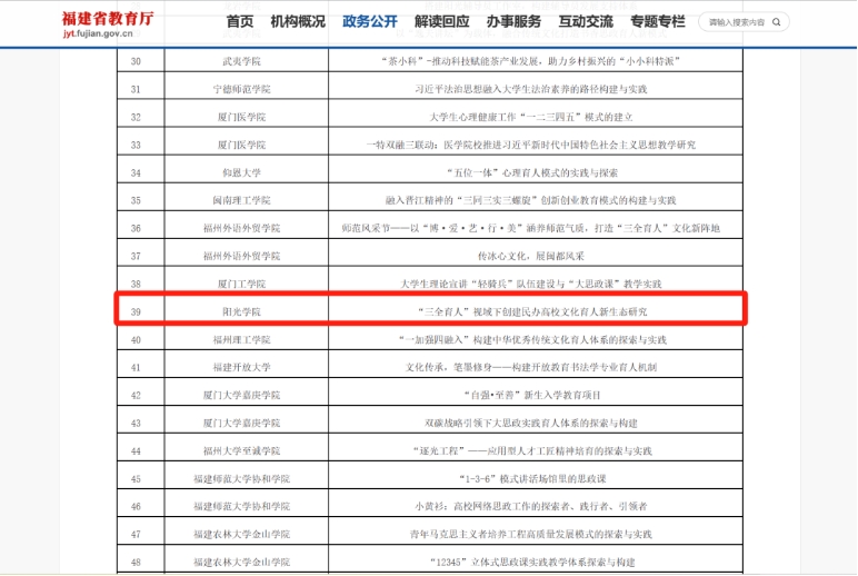 近日,福建省委教育工委公布了2023年福建省高校思想政治工作质量提升综合改革与精品建设项目入选名单,伟德体育直属党支部“思政杰青”团队申报的思想政治工作项目《“三全育人”视域下创建民办高校文化育人新生态研究》入选2023年福建省高校思想政治工作精品项目。