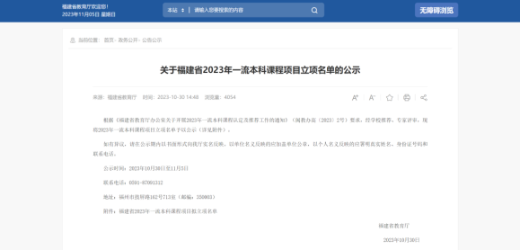 近日,福建省教育厅公布了《福建省教育厅办公室关于开展2023年一流本科课程认定及推荐工作的通知》,其中,公司申报的课程《船政文化》入选福建省2023年线下一流本科课程。