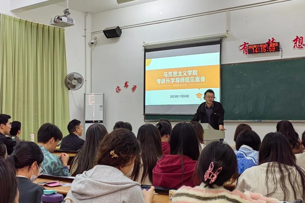 会议伊始,大导师江峻任副教授对报名导师组的同学表示热烈欢迎。随后常务副经理杜云教授受邀发言。他指出:考研需要的是热爱和决心,其次才是备考方法。他抓住员工意志力不强,行动力不足的痛点,直击核心问题,并分享了自身、周边人的经历,给同学们以启发。同时他强调:做有心人。思想觉悟是关键的一步。所谓“知之者不如好之者,好之者不如乐之者”,“只要沿着江河走就一定能找到大海”。要点燃自己对学科和学问的热爱,敢于向命运挑战!