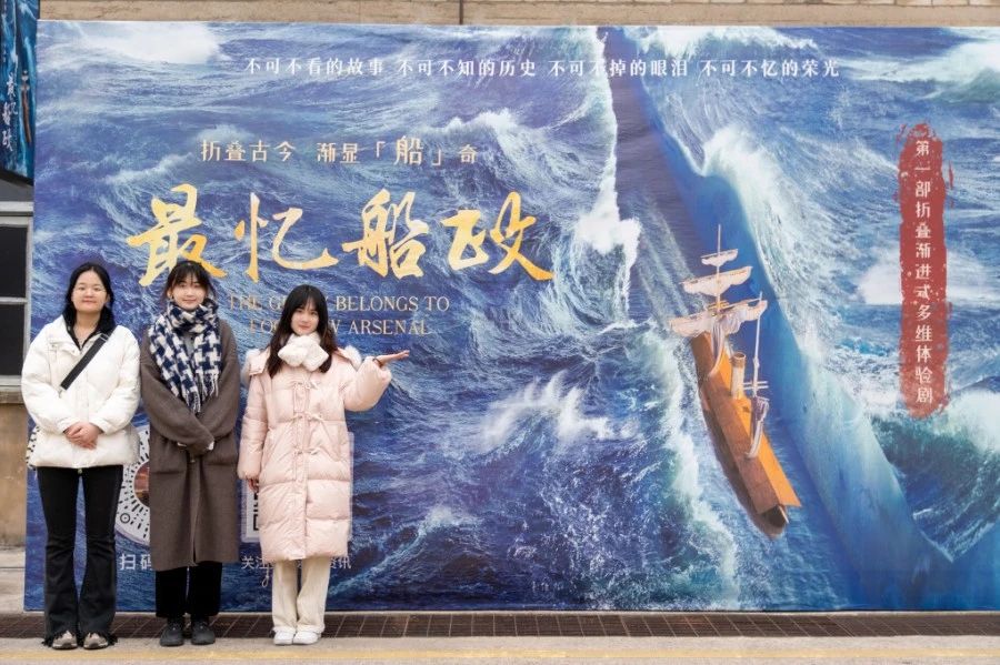 实践队观看了在船政文化城演出的话剧《最忆船政》,这是第一个折叠渐进式剧场,第一台船政历史题材立体演艺秀,第一部海洋强国多维体验剧......多个第一让队员们惊叹不已,从中,看到了几代船政人的探索奋进,感悟船政传递的文化自信。