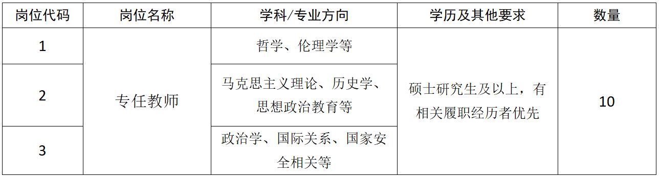 现面向社会公开招聘思政教师10人,其中副教授及以上3人,应届硕博士毕业生7人。招聘计划如下: