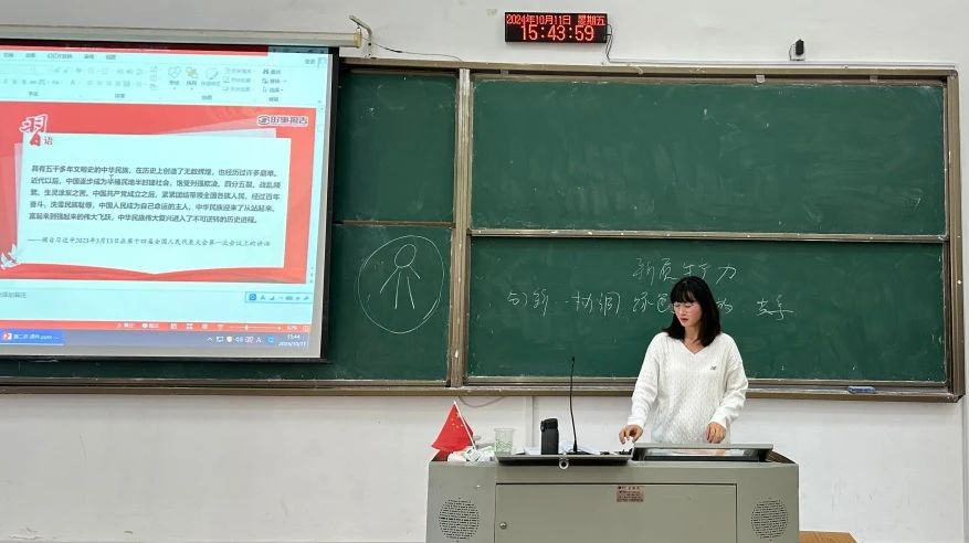 何云超老师就第一章七十五载迎盛世 砥砺前行续华章,进行说课程展示。通过建国初期与现如今对比进行开展,通过画图的板书方式进行对比,从经济、政治、文化、社会生活进行讲解。75年前骨瘦如柴,衣衫褴褛,如今血肉丰盈,身强体壮,锦衣绣袄。创新板书形势让员工更容易理解。