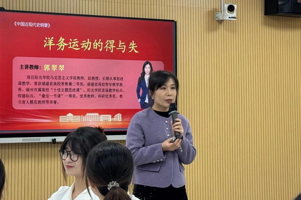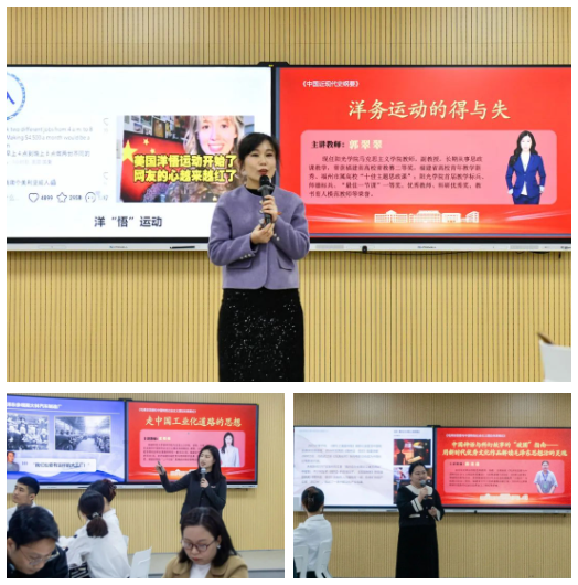观摩课现场,公司郭翠翠副教授首先进行了教学展示。她以员工们关注的小红书洋“悟”运动为切入点,对比百年前的洋务运动,导入到教学主题。
