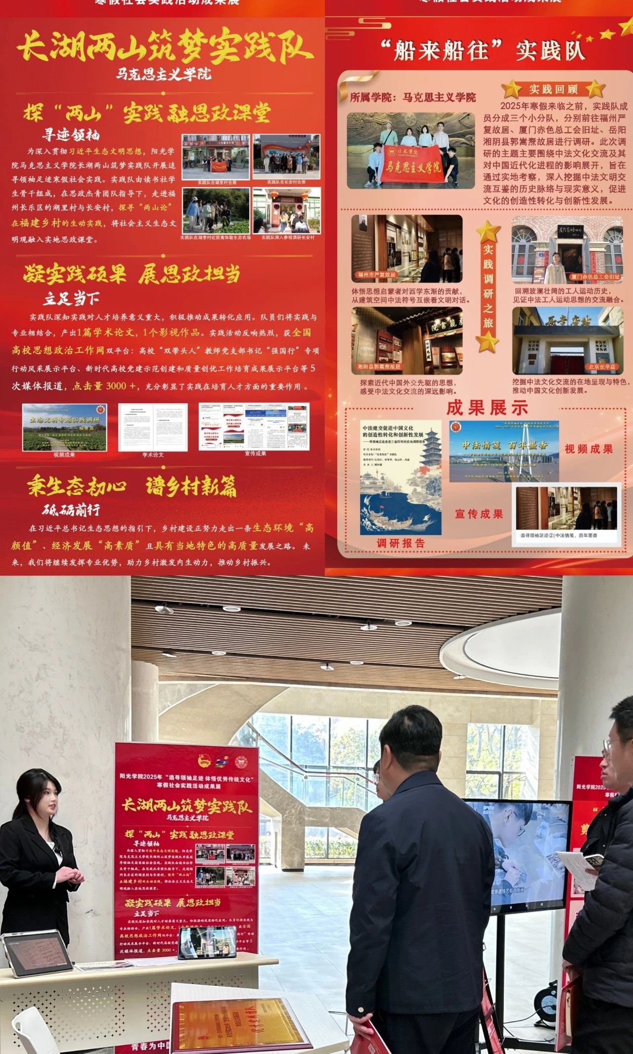3月19日于行政楼一楼开展的bevictor寒假社会实践成果展。在展板汇报活动中,长湖两山筑梦实践队成员林雨馨同学分别从探两山实践,融思政课堂;凝实践硕果,展思政担当;秉生态初心,谱乡村新篇三方面介绍生态宜居美丽乡村:福州长乐区湖里村与长安村,展示“两山论”在福建的生动实践,将社会主义生态文明观生动地融入到实地思政课堂。