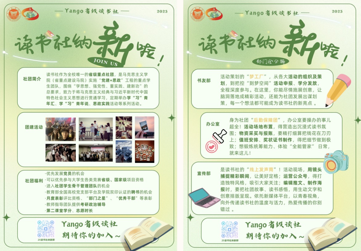 加入读书社,成员可通过参与各类活动获得第二课堂学分,为学业成绩添砖加瓦;同时,社团活动还会累计志愿时长,助力大家丰富校园经历、践行志愿服务精神。