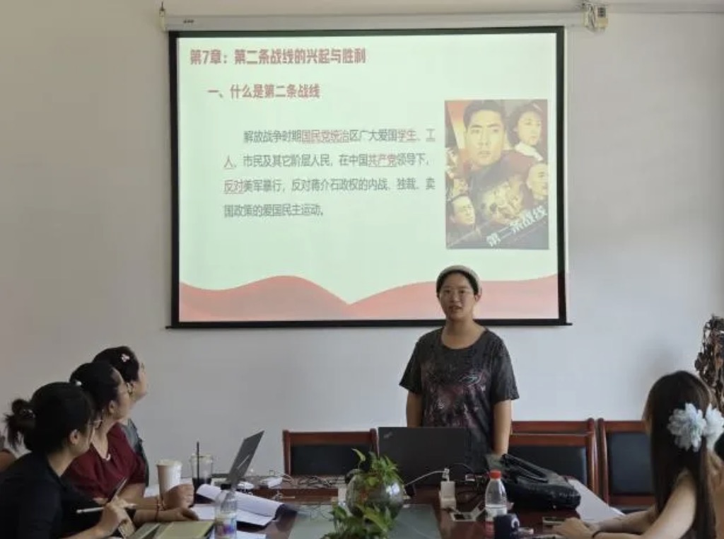 在《四史教育》课程的磨课环节,郭倩楠老师对《第七章:第二条战线的兴起与胜利》进行了详实的讲解。她条分缕析地梳理了历史脉络,清晰展现了第二条战线形成发展的过程及其重大历史贡献。