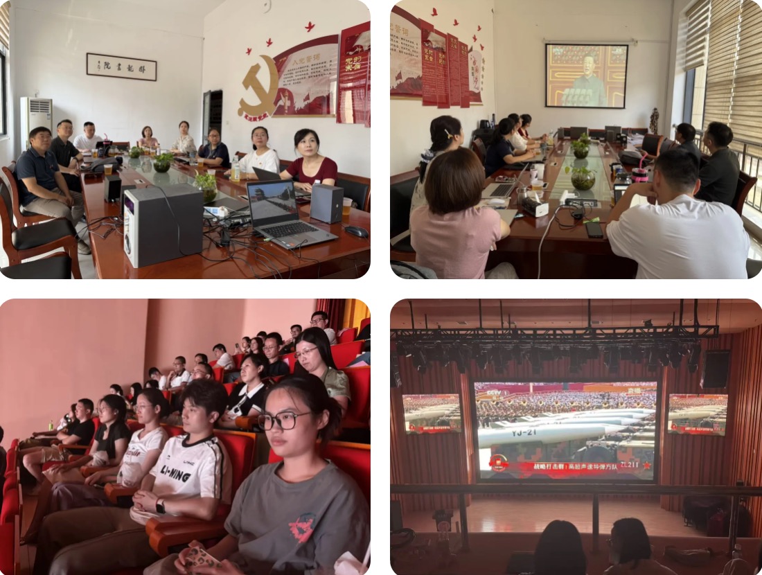 教师们认真聆听习近平总书记的重要讲话,通过直播镜头共同回顾中华民族浴血奋战的光辉历程,深切感受“正义必胜!和平必胜!人民必胜!”这一铿锵有力的时代强音。