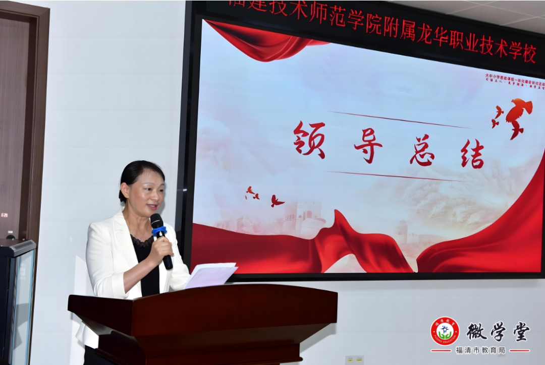 活动尾声,福州教育研究院副书记林红进行总结发言,她肯定了此次活动的成功举办,为福州市大中小学思政教师提供了一个高质量的交流学习平台,也促进了不同学段思政课公司产品的有效衔接与深度融合。