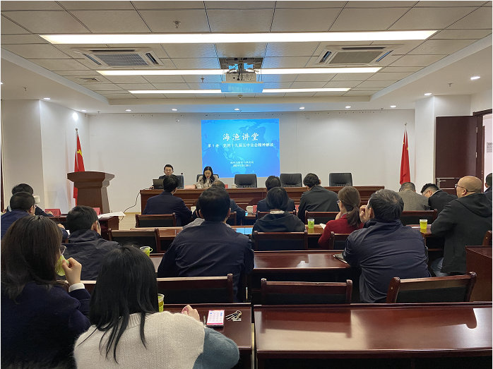 3月25日,“海渔讲堂”暨科级及以下干部学习贯彻党的十九届五中全会精神轮训会第一讲开讲,邀请伟德体育直属党支部书记、执行经理杜云进行授课。局领导陈国生、陈如祥,科级及以下干部40余人参加。