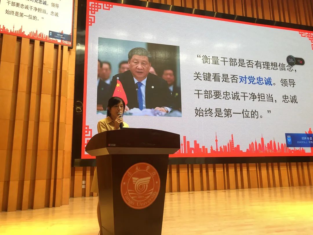 郭翠翠副教授党课宣讲内容围绕对党忠诚、理论联系实际、自我革命三个方面展开。
