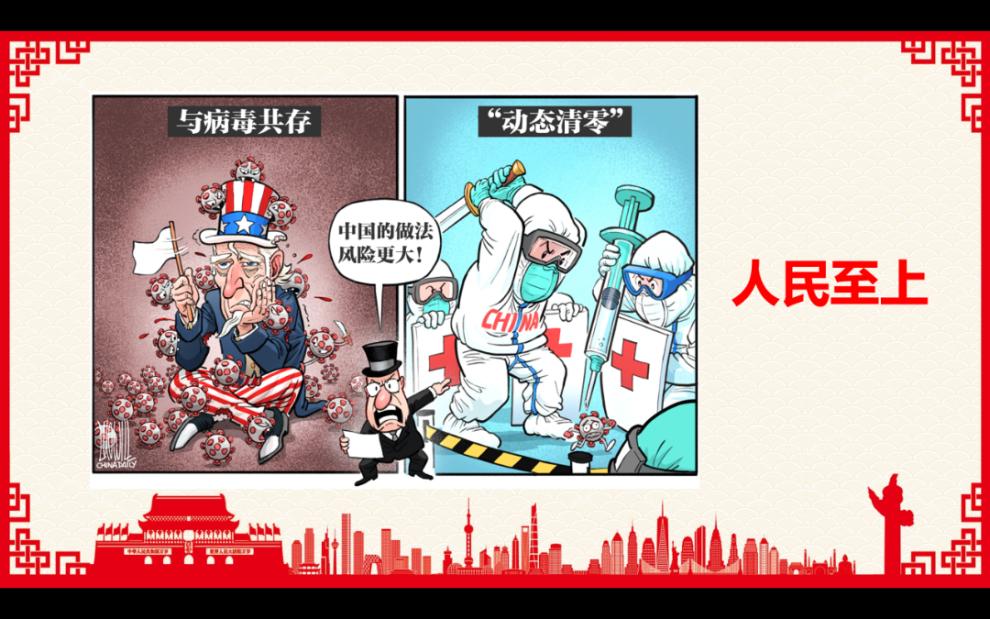郭翠翠副教授指出我国仍处于并将长期处于社会主义初级阶段这一客观实际,回看我国取得的抗疫成果和当今疫情的实际情况,提出了“人民至上”的口号。