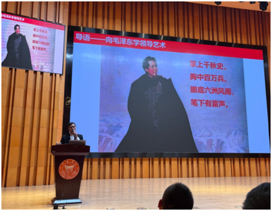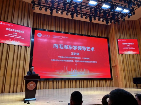 接着,王君尧副董事长从“战略思维、世界眼光、哲学头脑、调查研究、政策策略、工作方法、知人善任、军事才能、活的灵魂”等九大方面进行了深刻阐释。当讲授毛泽东“知人善用”的领导艺术时,他妙用《西游记》中唐僧团队“西天取经”的成功案例,生动分析毛泽东“出主意”和“用干部”的领导者责任,以毛主席“识人之智”、“用人之术”、“容人之量”的领导艺术,探寻单位部门、现代企业的管理之道。