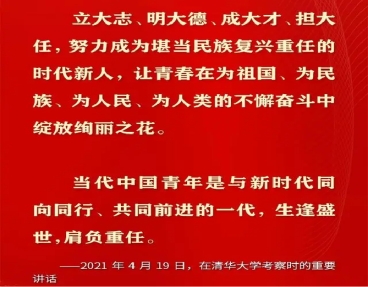 “青年强,则国家强。当代中国青年生逢其时,施展才干的舞台无比广阔,实现梦想的前景无比光明。”