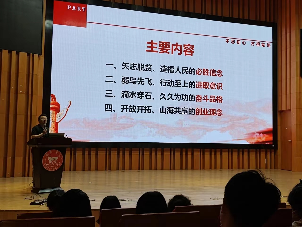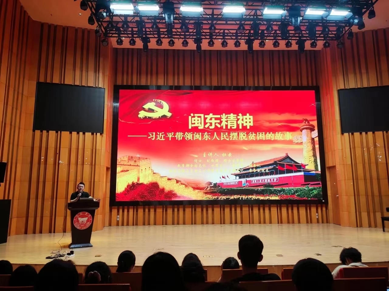 杜云副教授以“矢志脱贫、造福人民的必胜信念;弱鸟先飞、行动至上的进取意识;滴水穿石、久久为功的奋斗品格;开放开拓、山海共赢的创业理念”四个层面阐述闽东精神的核心内容,带领同学们回望闽东摆脱贫困的“凿空之旅”,为同学们讲授了一堂内容深刻、形式新颖的党课。