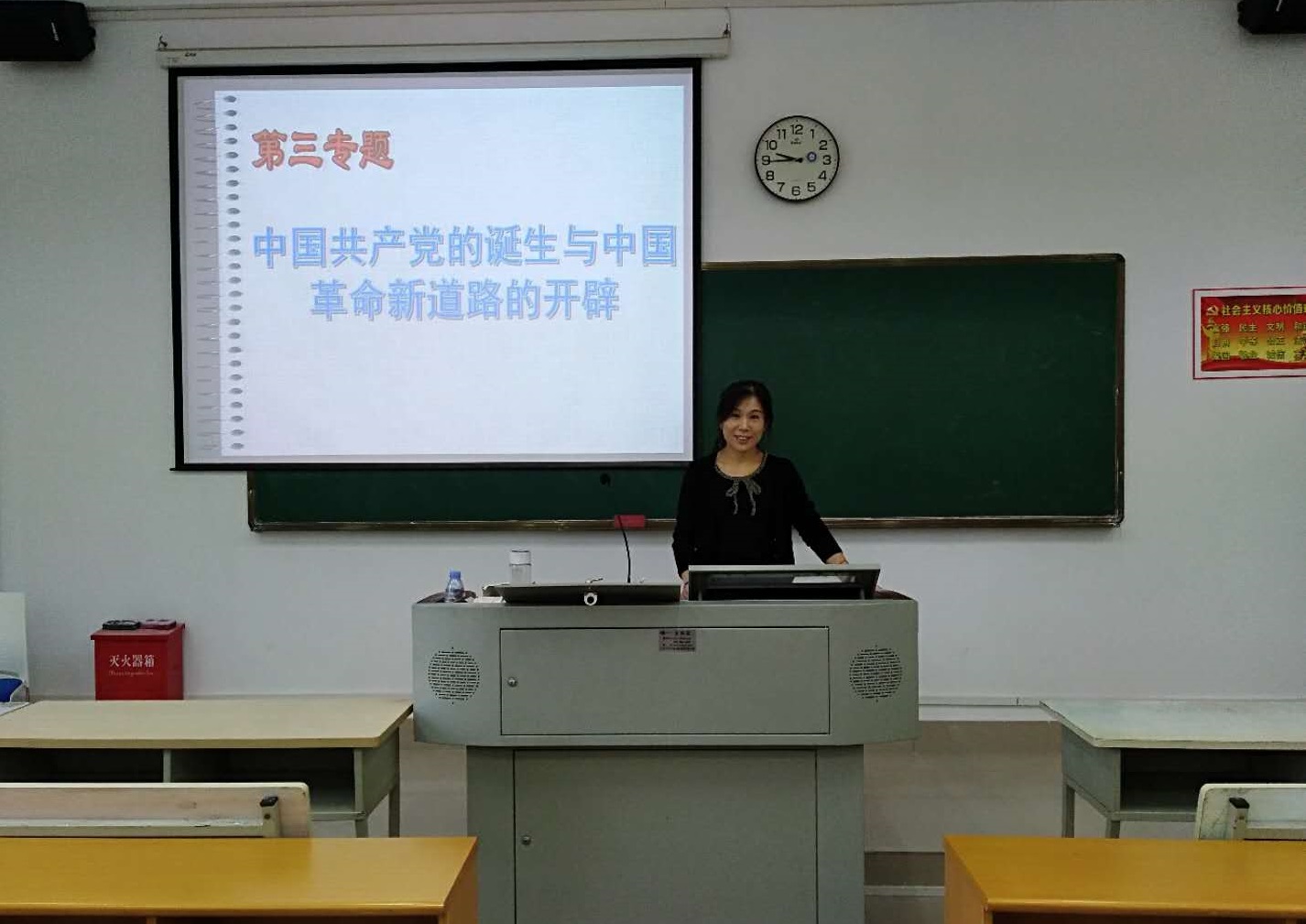 活动开始,由各位教师依次进行授课,王晓雨副教授极具启发性地为大家讲授《中华民族的抗日战争》专题;郭翠翠老师则紧贴学术前沿授课第三专题《中国共产党的成立与中国革命新道路的开辟》;陈志平老师以哲理性、趣味性课堂小活动导入进行《对国家出路的早期探索》的授课,三位老师的授课环节各具特色。