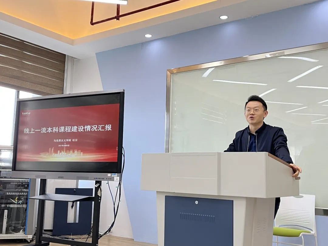 公司杜云副教授就他的省级线上一流课程《论语》导读,与现场教师进行讨论交流,他从申报书填写的角度切入,围绕组建教学团队、凝练课程特色、突出课程创新等方面,介绍了申报课程的建设现状,并提出下阶段课程建设的思路和措施,同时建议各位老师要讲好自己课程的“故事”。